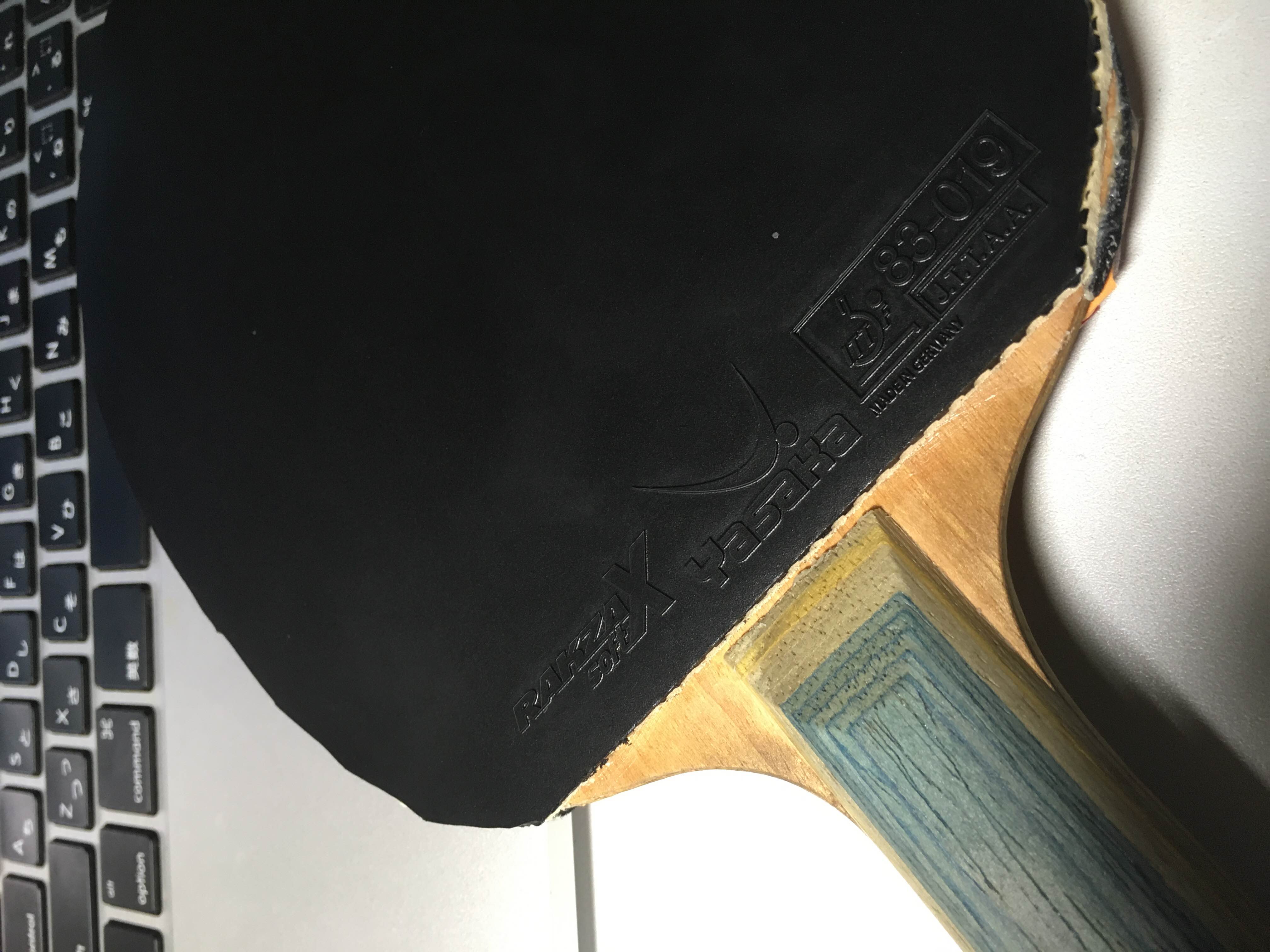 新しいラバーはラクザXソフトです。モリストよりはやや硬く、コシがあるなーって感じでした。YASAKAのテンションって感じです。